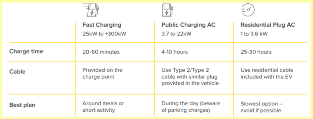 Elbiler kan oplades ved tre forskellige effektniveauer:
